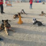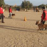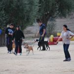 Juntamos a varios perros y dueños y trabajamos con diferentes motivaciones para asegurarnos que nuestros perros nos escuchan, no sólo en casa o cuando tenemos un premio, sino cuando nosotros se lo pedimos. A la vez que aprenden y para que no se les haga tan monótono, hacen deporte sorteando obstáculos de agility y agilizando la mente con muchos otros.